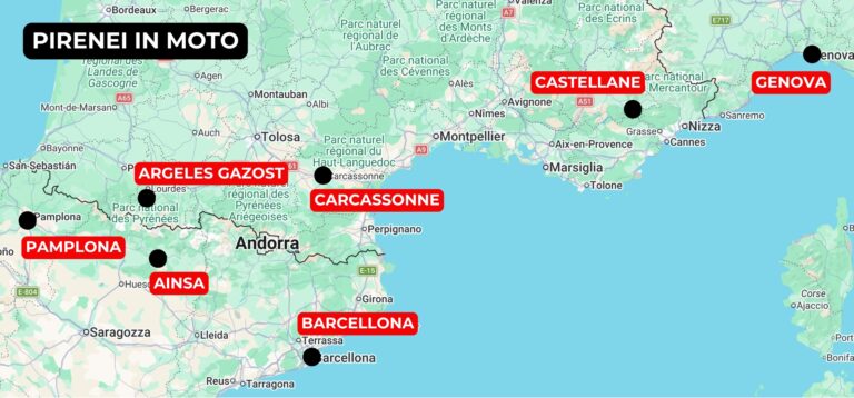 Le ultime emozioni del tour le viviamo a cavallo tra Francia e Italia. Da Castellane imbocchiamo la valle del Var che abbandoniamo a Le Plan du Var per risalire quella del Vésubie e raggiungere la M70 che ci porta ai 1.604 metri del Col de Turini, il passo reso universalmente famoso dal rally di Montecarlo. La strada si attorciglia su sè stessa su entrambi i versanti del colle, rendendo la guida un’esperienza unica. Scendendo dal Turini tocchiamo Sospel e attraverso il Colle dell’Olivetta rientriamo in Italia. Facciamo tappa a Dolceacqua, luogo natale di Andrea Doria, risaliamo a Perinaldo e poi lasciamo che sia la gravità a portarci fino ad Arma di Taggia, dove imboccheremo l’autostrada per raggiungere Genova e terminare così, nello stesso luogo dove è cominciato, questa affascinante avventura che ci ha portato a scoprire e a vivere gli angoli più suggestivi dei Pirenei, caracollando tra Spagna e Francia, ma anche ad affrontare celeberrime località, veri e propri paradisi per motociclisti.